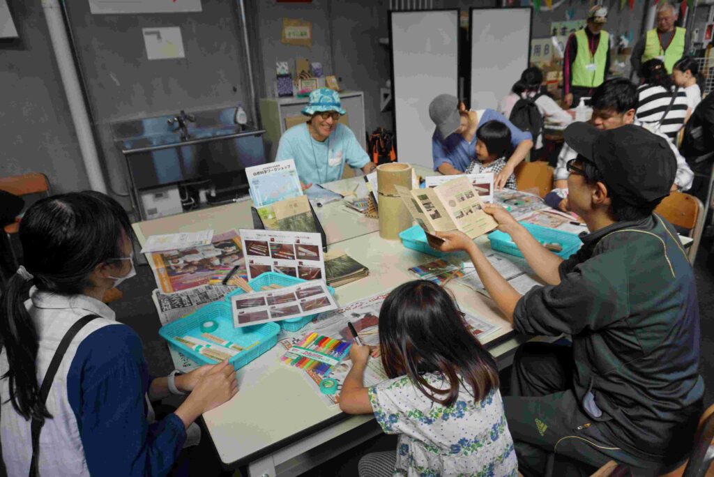 むさしのエコreゾートで開催された「あったかまつり」内にて、竹紙とんぼづくりのワークショップを開催しました。